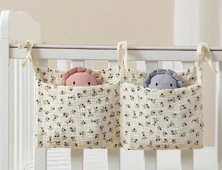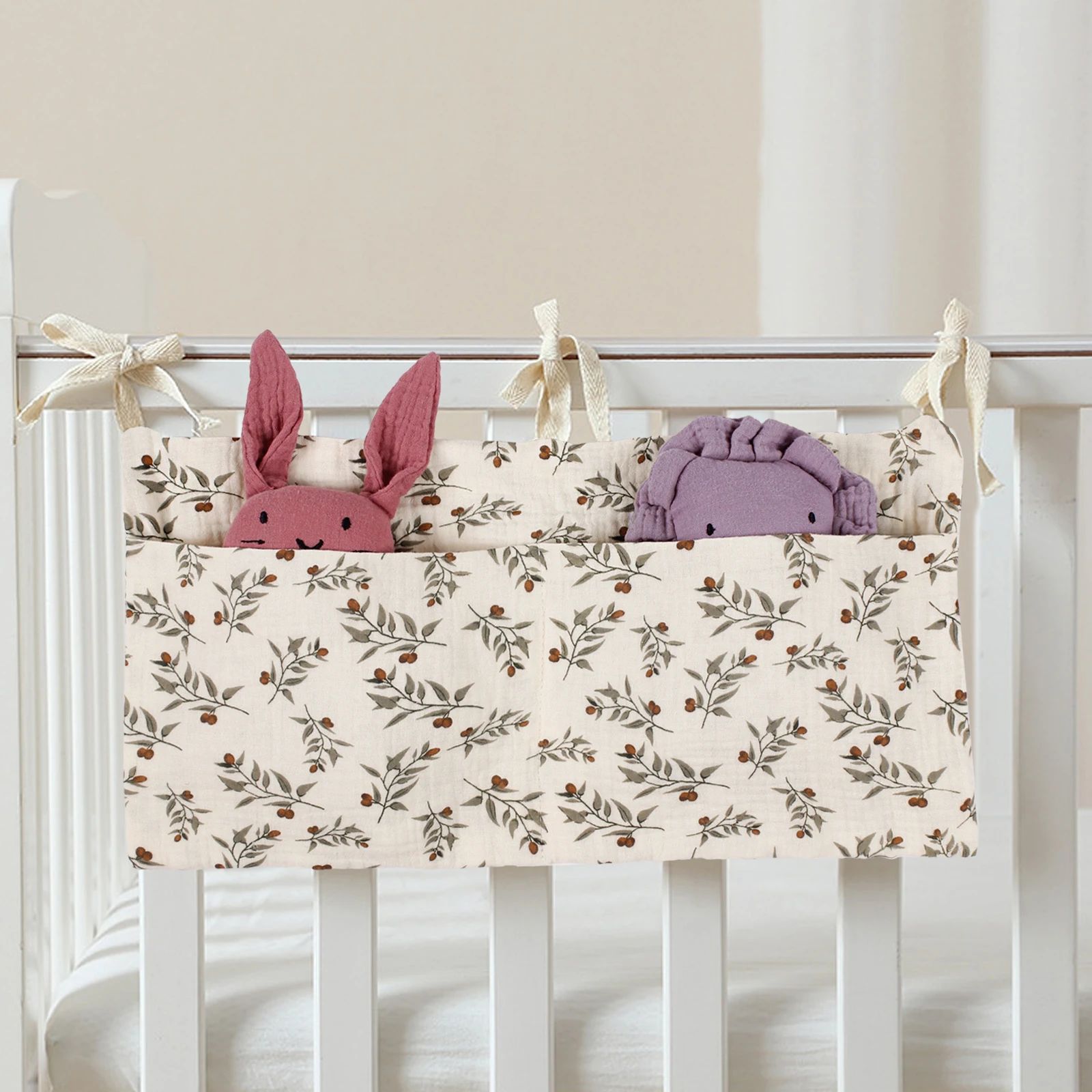Baby Crib Storage Bag Cotton Muslin Stroller Hanging Mulitifunction Toddler Diaper Nursery Bed Storage Organizer
