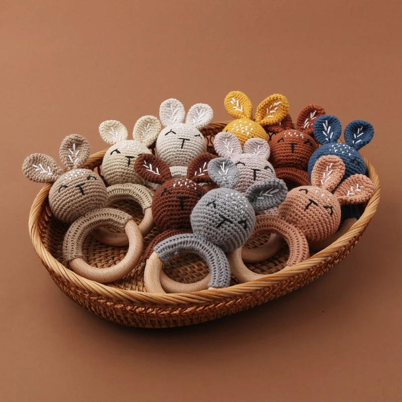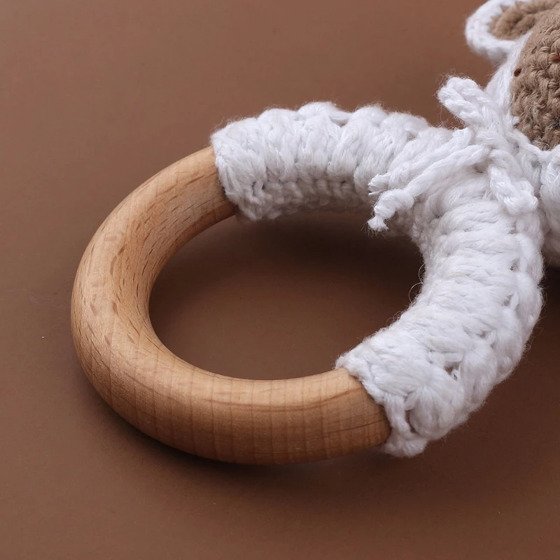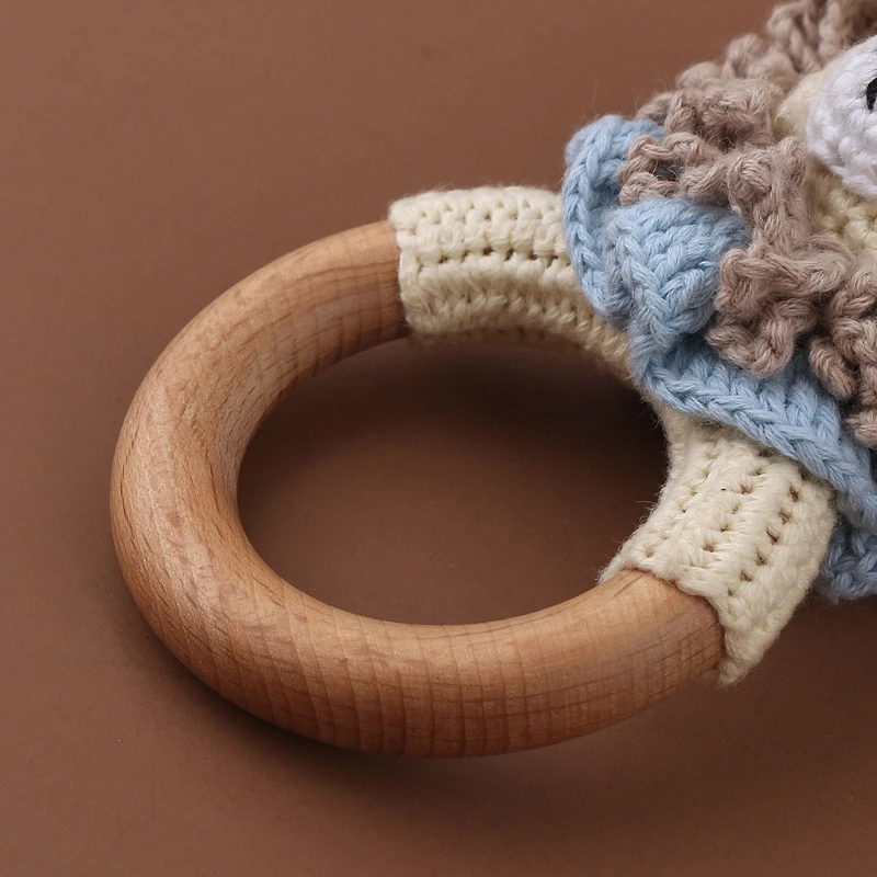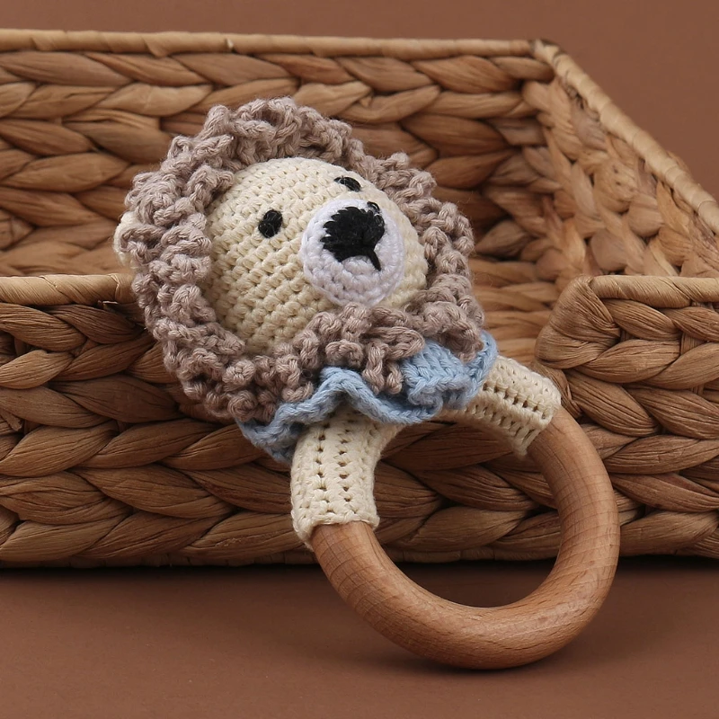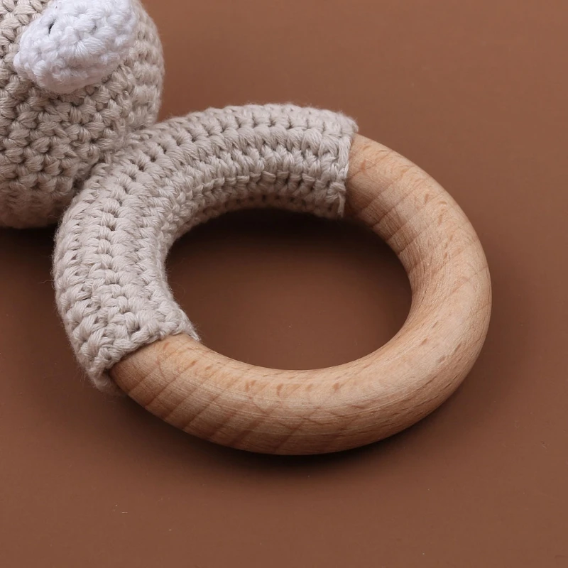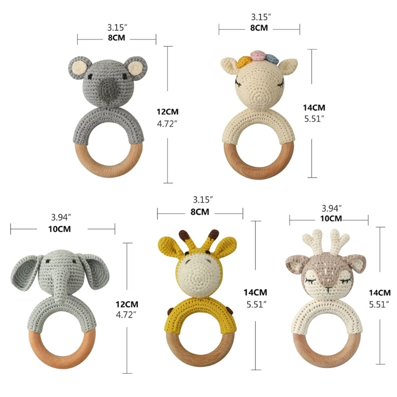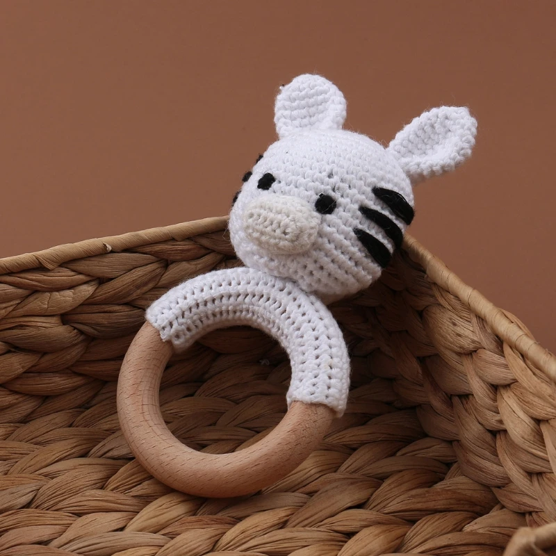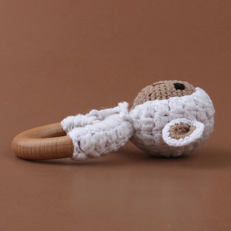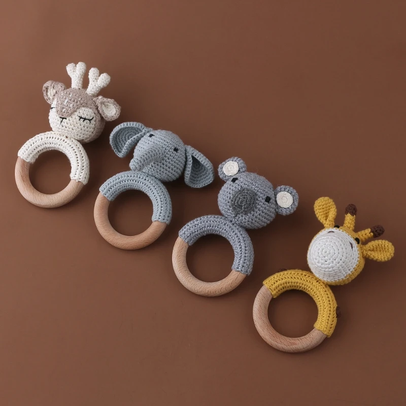 BPA Free Baby Wooden Teether Crochet Cartoon Baby Rattle Toys Wooden Ring Rodent Toys Mobile Gym Kids Newborn Educational Toys
