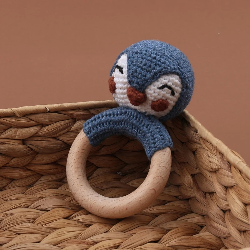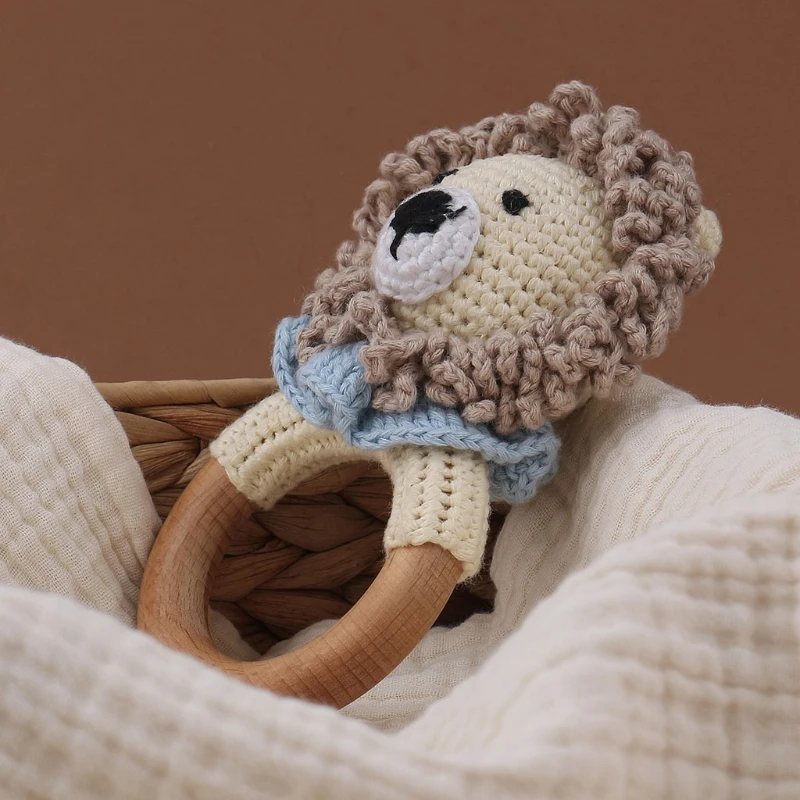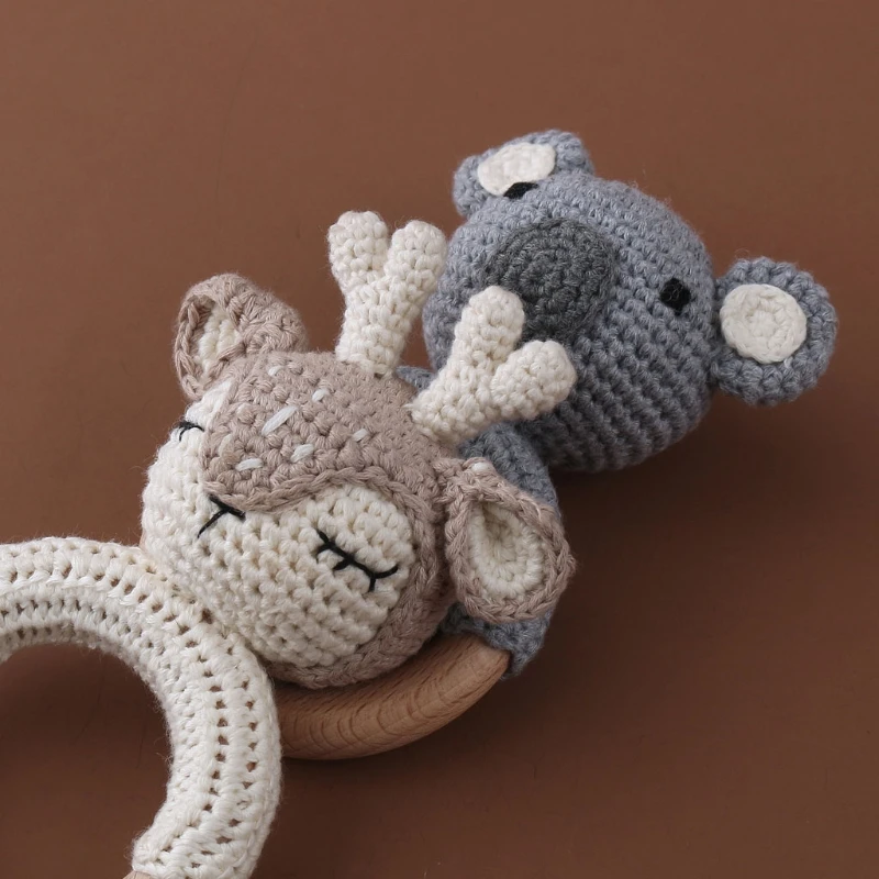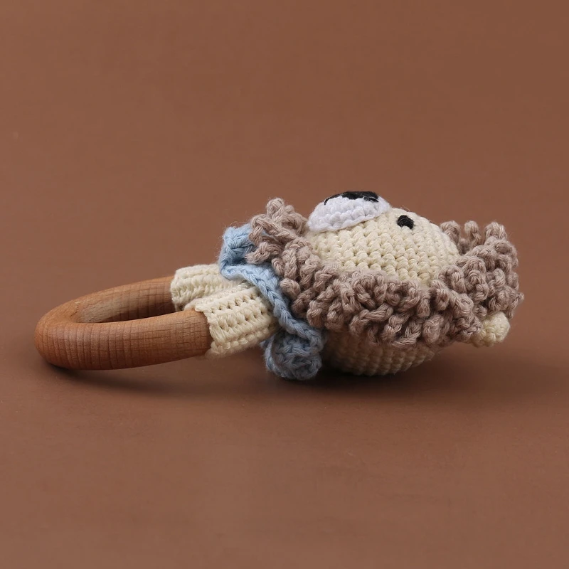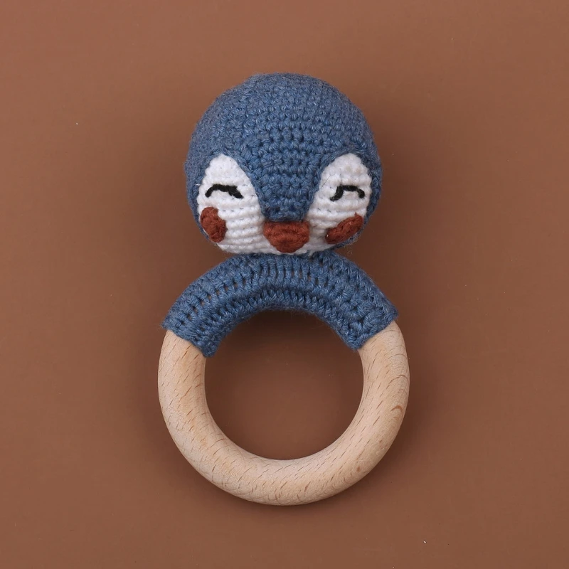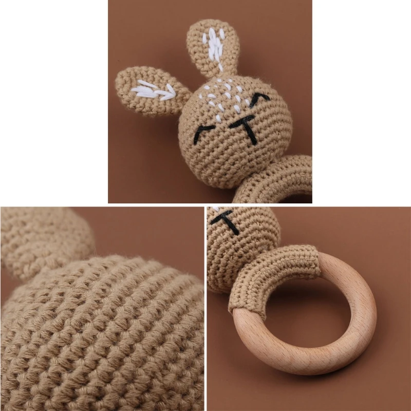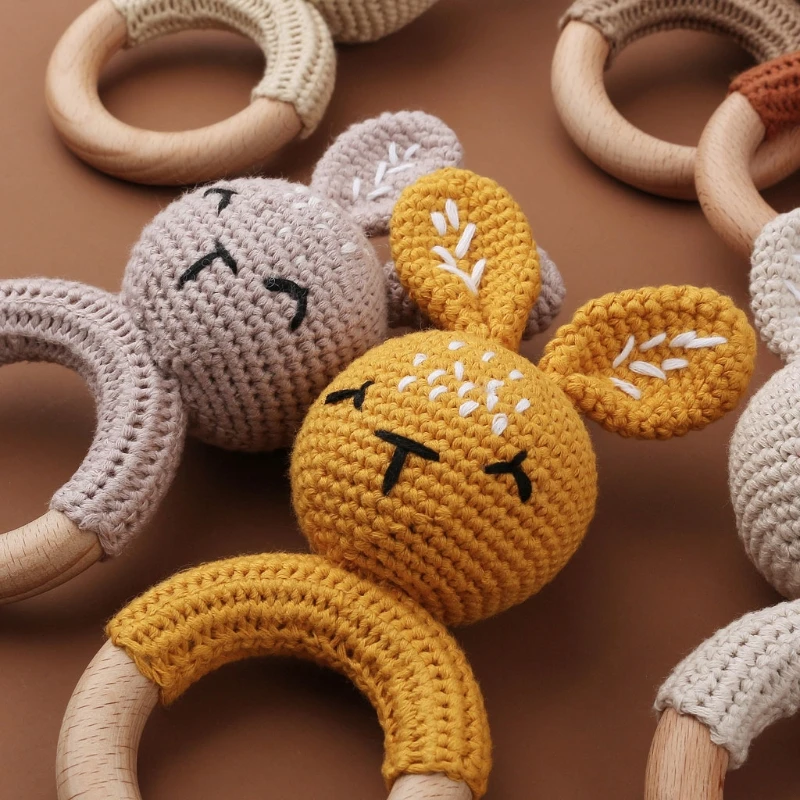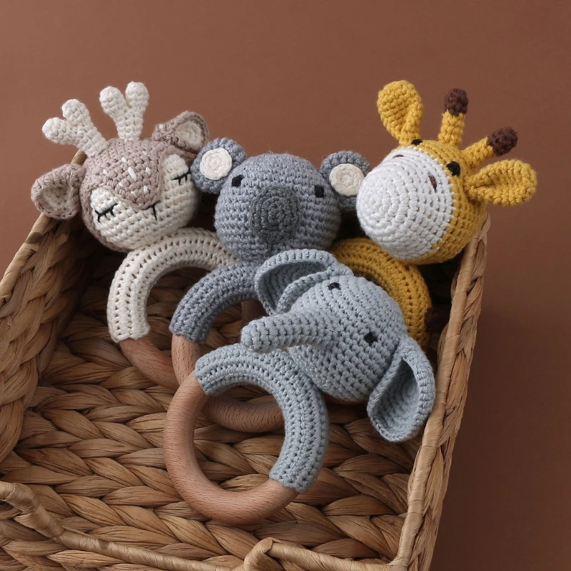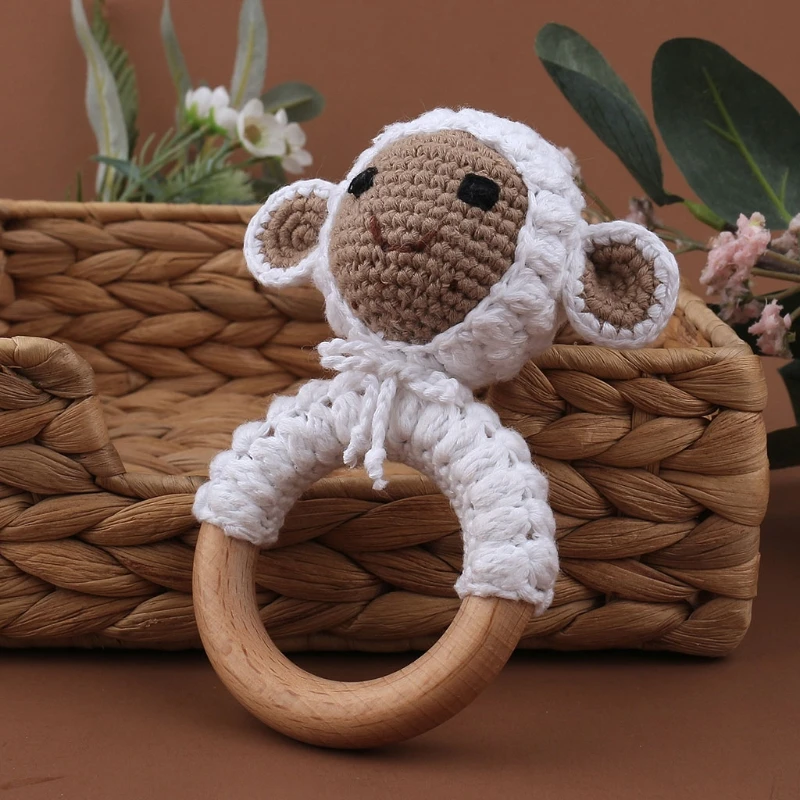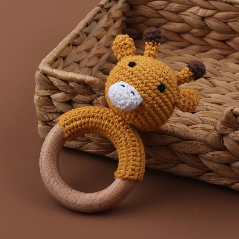 BPA Free Baby Wooden Teether Crochet Cartoon Baby Rattle Toys Wooden Ring Rodent Toys Mobile Gym Kids Newborn Educational Toys