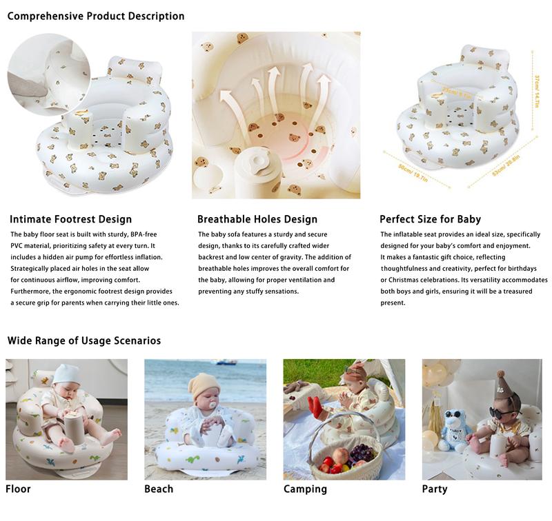 The LittleCloudToys Bear-Inspired Inflatable Baby Seat provides cozy, ergonomic support so infants (3 months+) can sit up confidently. Lightweight, portable and easy to wipe clean, it’s the perfect floor seat for tummy-time, playtime, and tiny explorers taking their first upright moments. Always use under adult supervision.
