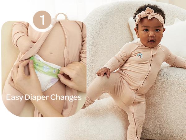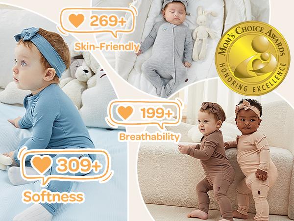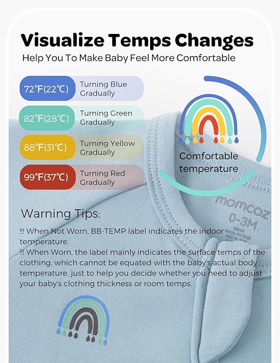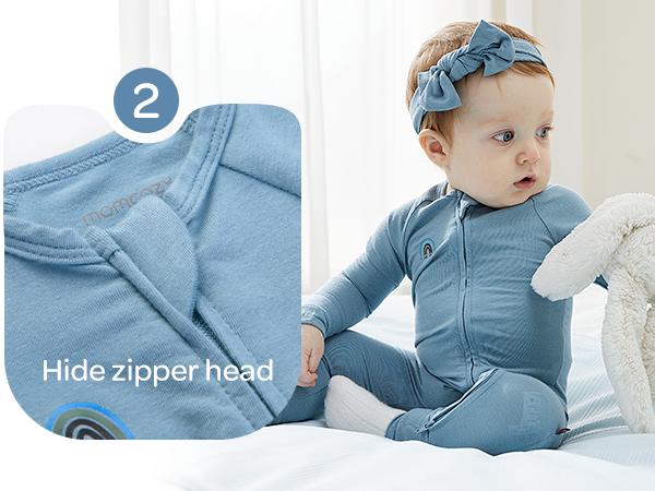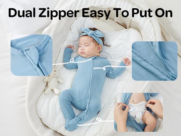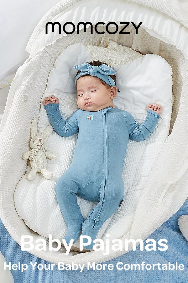 Momcozy Boy Girl Baby Pajamas, 0-24 M Temp-Sensing 2-Way Zipper Newborn Sleepers, Stretchy Viscose Derived from Bamboo Minimalist,2 Pack