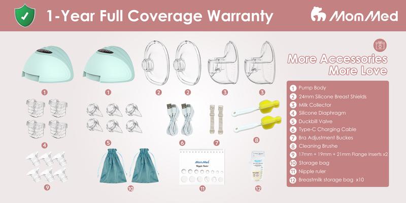 Mommed Wearable Breast Pumps, Hands Free Breast Pump S21 with Strong Suction, Low Noise & LED Display, Full in Bra Portable Electric Breast Pump with 3 Modes & 12 Levels Nursing Feeding Care