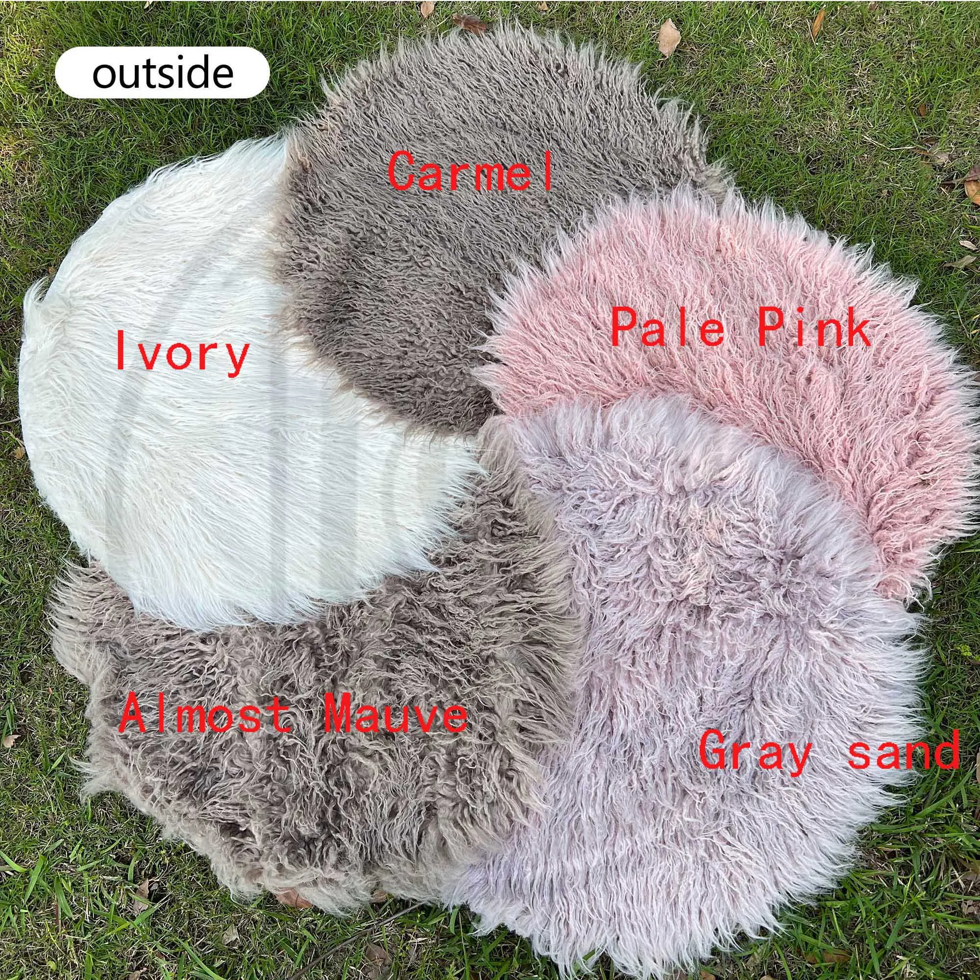 Product name: Soft Long Pile Mongolia Faux Fur Newborn Photography Blanket,newborn photo,baby blanket,baby blankets Material: 45% Acrylic+45%Polyester Process: By machine in workshop Size: Diameter approx 60cm.Pile around 10...