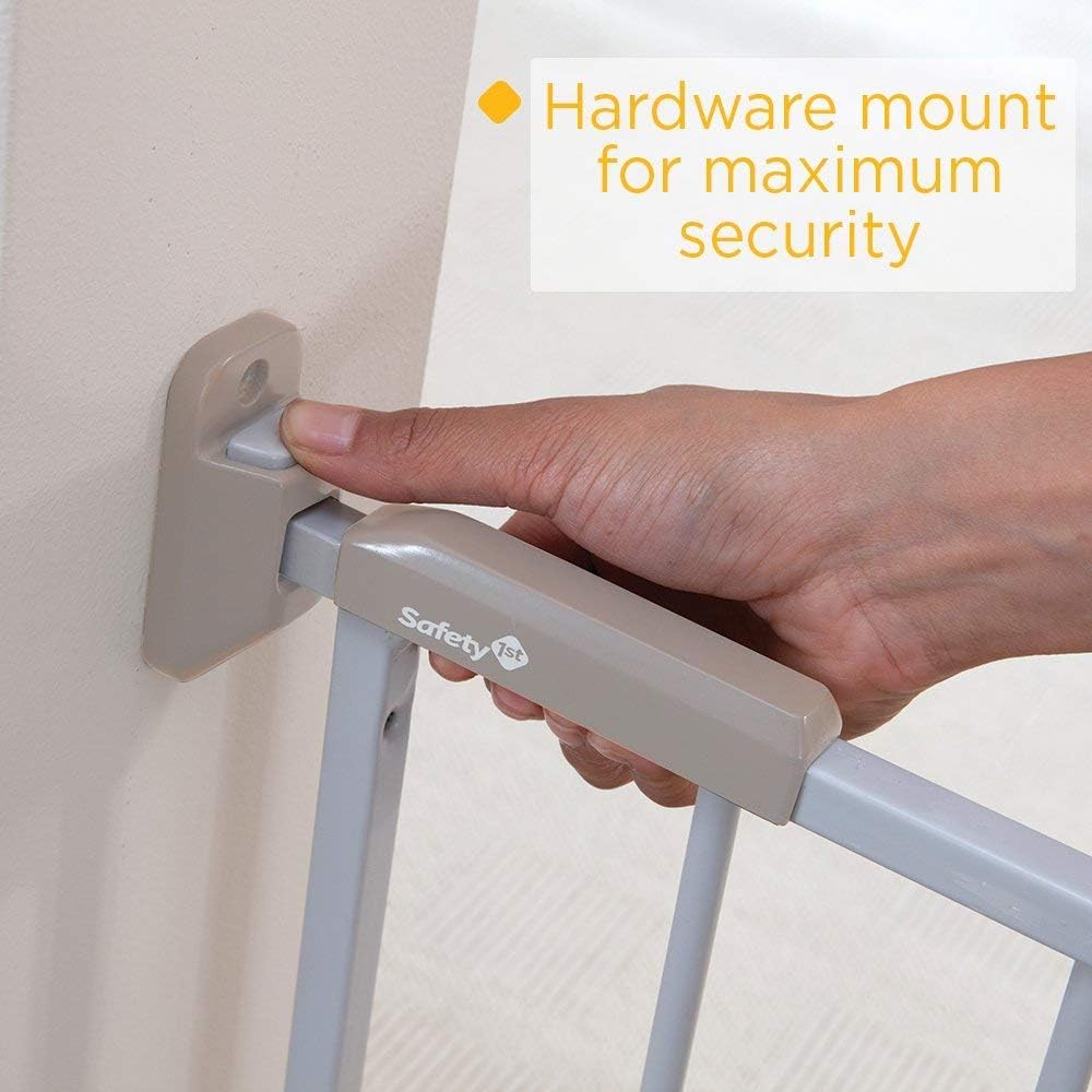 The wide & sturdy sliding gate helps you keep your curious crawler in the child-friendly areas of your home, but makes it easy for you to travel from room to room. The sturdy frame of the gate expands from 40 to 60 inches For coverage between extra-wide openings and provides a full 26.5 inches of height protection. Because parents often have their hands full, this gate is designed to open easily with one hand: just press and slide the easy grip handle to open. It also gives you options, with a pass-through slide open or a swing open option, The wide & sturdy sliding gate lets you choose what works best for your family.